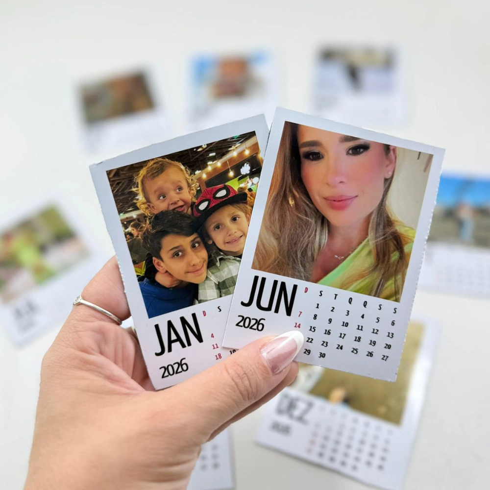 Transforme seus melhores momentos em um calendário cheio de significado! O Calendário Polaroid Magnético com 12 Fotos é perfeito para eternizar memórias mês a mês, deixando sua geladeira ainda mais afetiva, personalizada e cheia de amor.